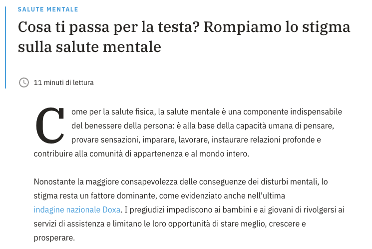 3) Un breve articolo sullo stigma ancora presente della salute mentale e qualche consiglio per abbatterlo.