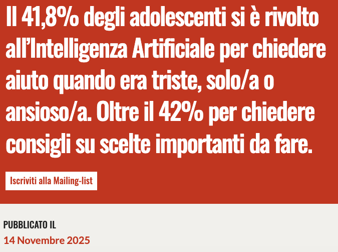 4) Questa analisi ci svela che quasi 4 adolescenti su 10 chiedono aiuto all’Intelligenza Artificiale nei momenti di difficoltà: tra tristezza, solitudine e scelte di vita.